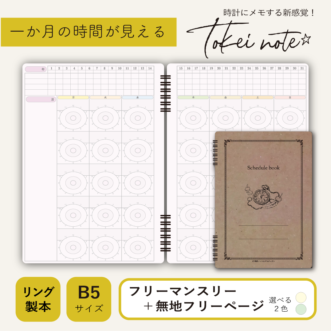 B5マンスリー・時計ノート☆/フリーページ無地ver
