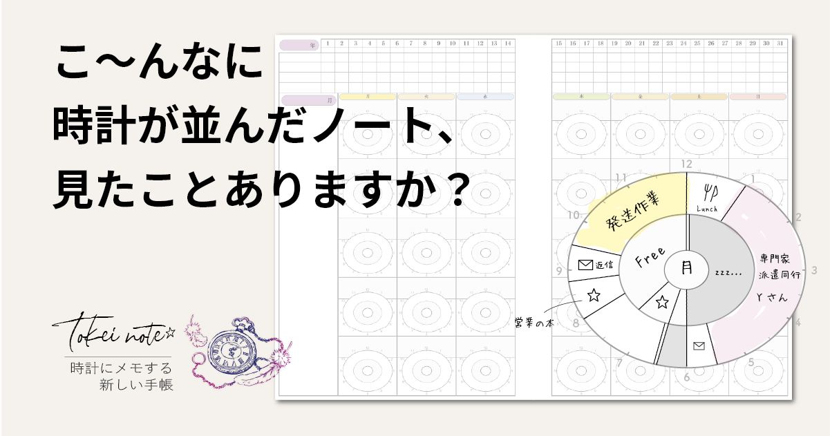 シンプルでエレガントな時計ノートは、毎日の予定管理に最適なスケジュール帳です。表紙には時計のモチーフがあしらわれた上品なデザインで、フリーマンスリー形式を採用しているため、いつからでも使い始めることができます。無地のフリーページは、自由な発想でスケジュール管理や記録が可能です。スパイラル製本により180度開くので書きやすく、デスクに置いたままでも使いやすい設計になっています。カラーは落ち着いたベージュとミントの2色からお選びいただけます。A5サイズで持ち運びにも便利で、ビジネスシーンでもプライベートでも活用できる実用的な一冊です。シンプルながらも機能的で、日々の暮らしに寄り添う手帳として長くご愛用いただけます。
