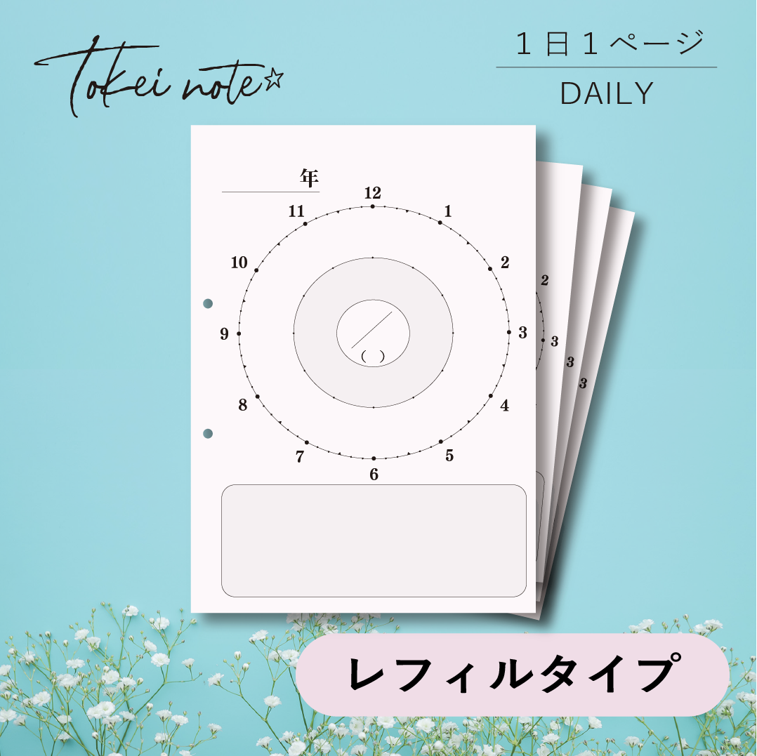 A4ワンデイレフィル/1日1枚・時計ノート☆/A4 2つ穴レフィル(100枚入り・200日分)